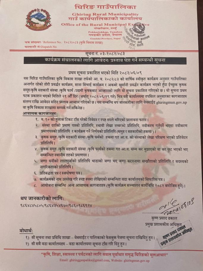कार्यक्रम संचालनकाे लागि आवेदन / प्रस्ताव पेश गर्ने सम्बन्धि सूचना।।।