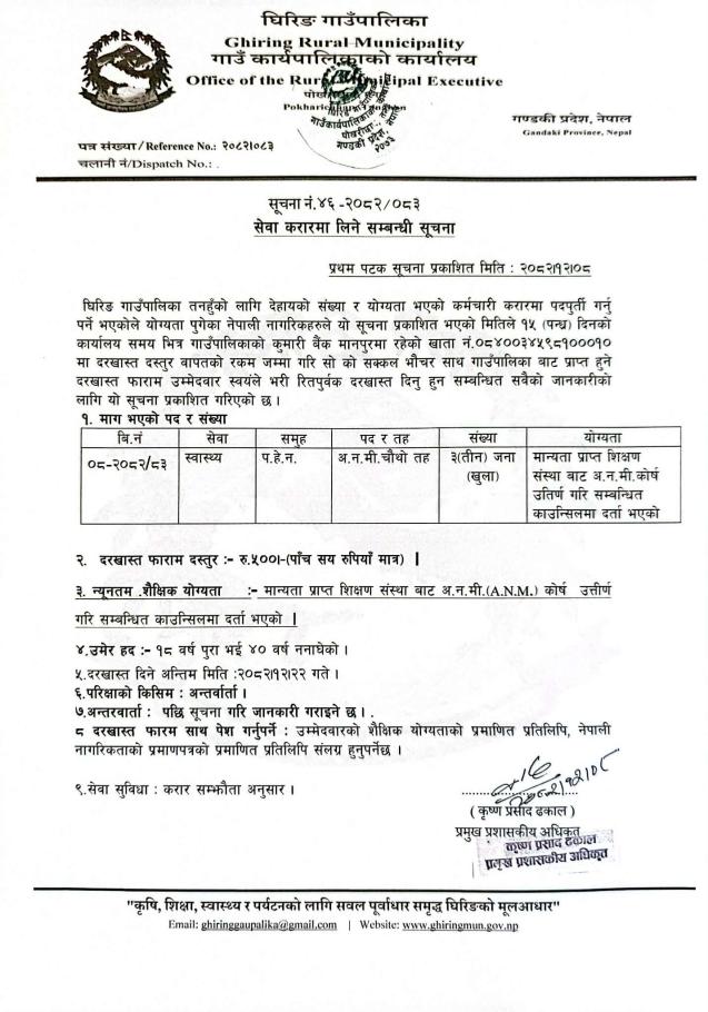 » सेवा करारमा लिने सम्बन्धी सूचना ।।।