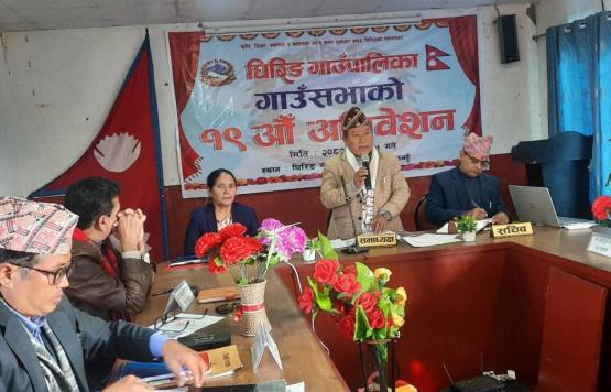 यसरी यो गाउँपालिका साविक गजरकोट गा.वि.सको ८ वटा वडा, साभुङ्ग भगवतीपुर गा.वि.स को ८ वटा वडा घिरिङ्ग सुन्धाराको ९ वडा, राम्जाकोट गा.वि.स.को १ वटा वडा, माझकोट गा.वि.स.को १ वटा वडा मिलि बनेको छ । यस गाउँपालिकाको पूर्वमा ऋषिङ गाउँपालिका, पश्चिममा स्यांजा जिल्लाकाे चापाकाेट नगरपालिका, उत्तरमा भिमाद ना.पा. र दक्षिणमा नवलपरासी बाैदीकाली गाउँपालिका र पाल्पा जिल्लाकाे रामपुर नगरपालिका पर्दछन् । राजनैतिक विभाजनका हिसाबले या गाउँपालिका जिल्लाको निर्वाचन क्षेत्र नं. ३ मा र इलाका नं. ९ अन्तरगत रहेको छ । यस गाउँपालिकाको प्रशासनिक कार्य साविक वडा नं. ६ र हालको वडा नं. ३ मा रहेको गाउँपालिकाको कार्यालयबाट हुने गरेको छ ।
