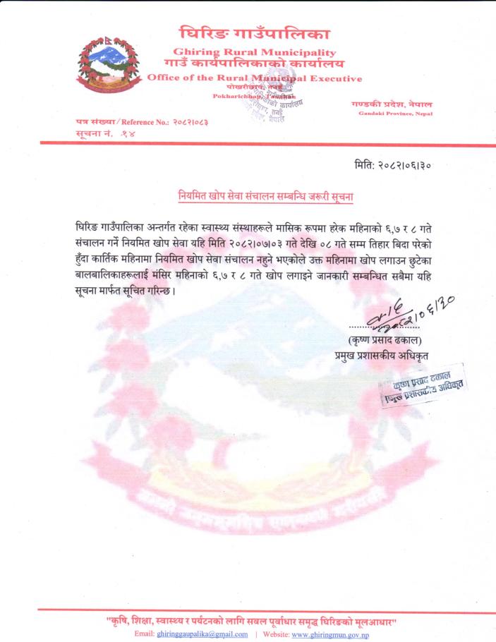 नियमित खोप सेवा संचालन सम्बन्धि जरूरी सूचना ।।।