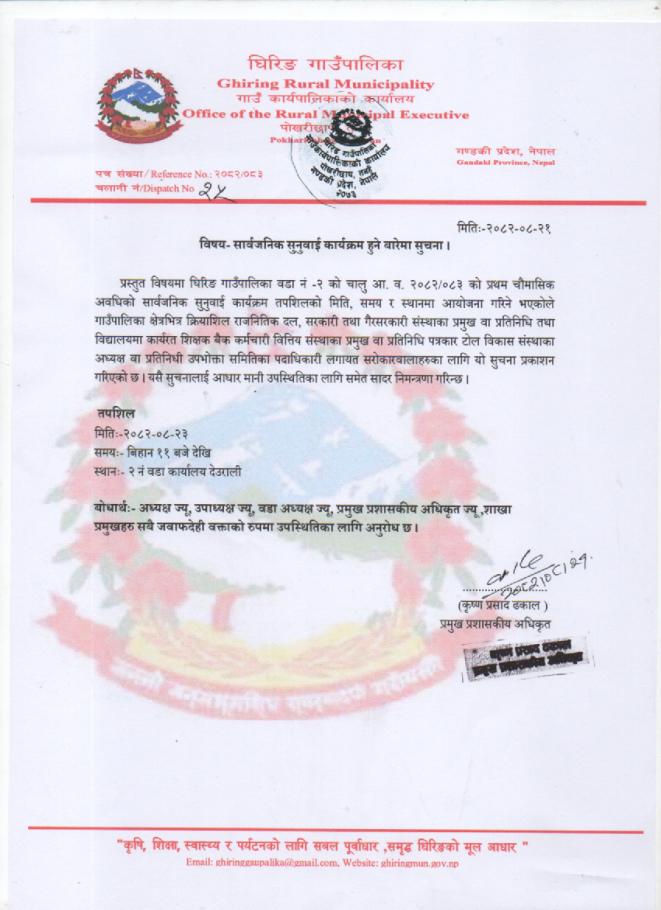 सार्वजनिक सुनुवाइ हुने सम्बन्धी सूचना ।।।